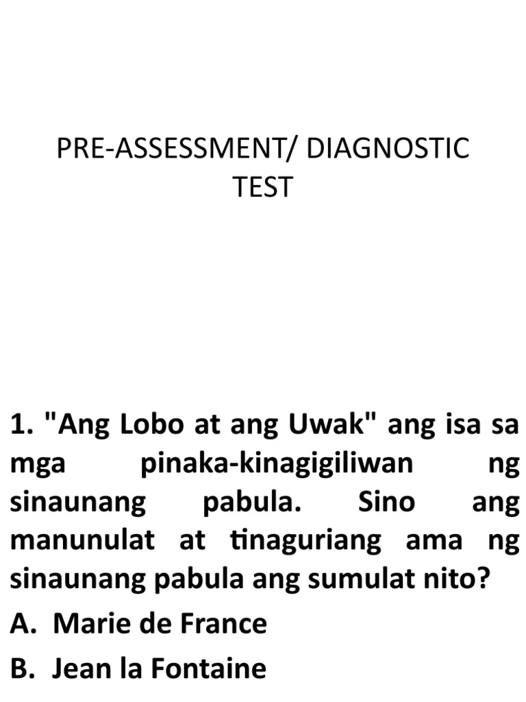 BOB ONG ROBERTO ONG MAHIRAP 5 PUNTOS BAWAT TAMANG KASAGUTAN 1. Marie de France bJean la Fontaine c.