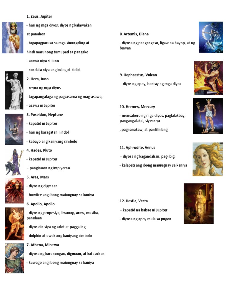 Mga Diyos At Diyosa Ng Mitolohiyang Griyego At Romano