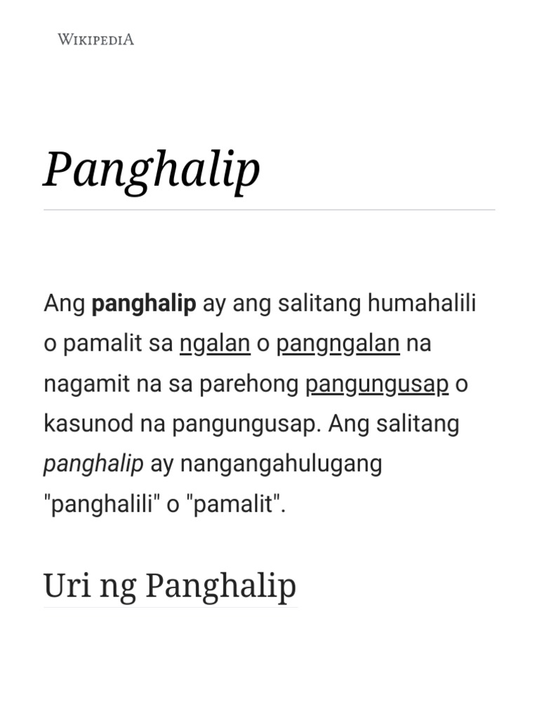 Ang Panghalip Ay Salitang Pamalit Sa Pangngalan