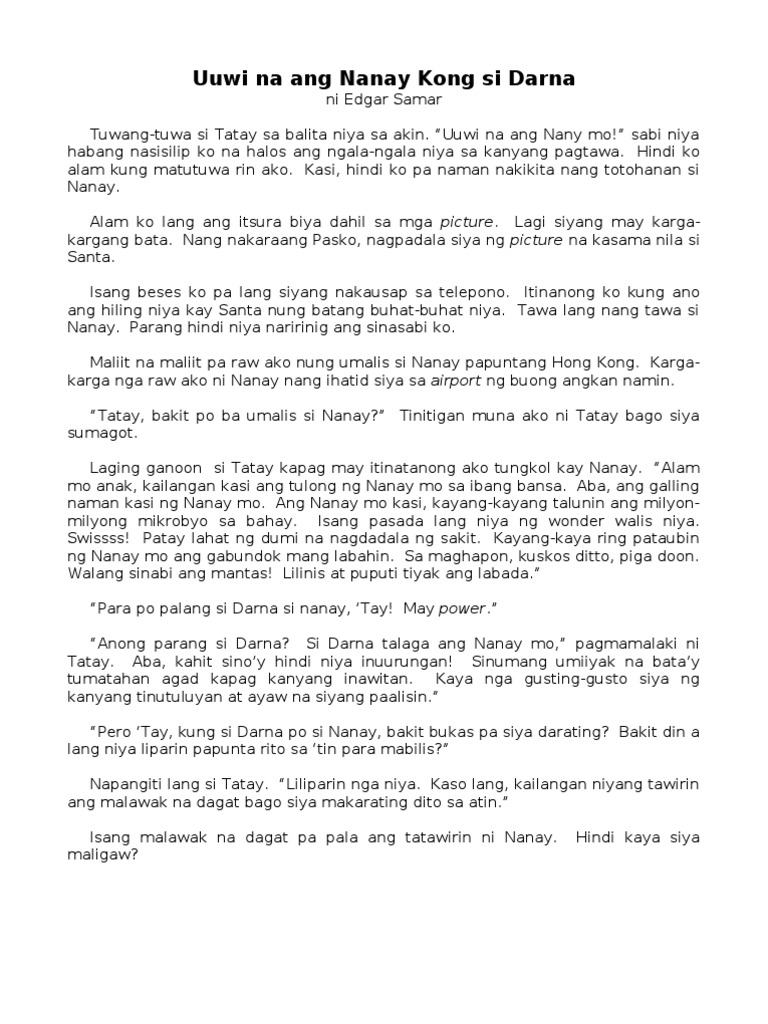 Does it has aunty yncle is he there you ask him did he get home. Ang iwan ang aming mga supling para lang makaahon sa hirap ng buhay sa Pinas. Sapagkat hindi siya magsasalita ng mula sa kaniyang sarili.